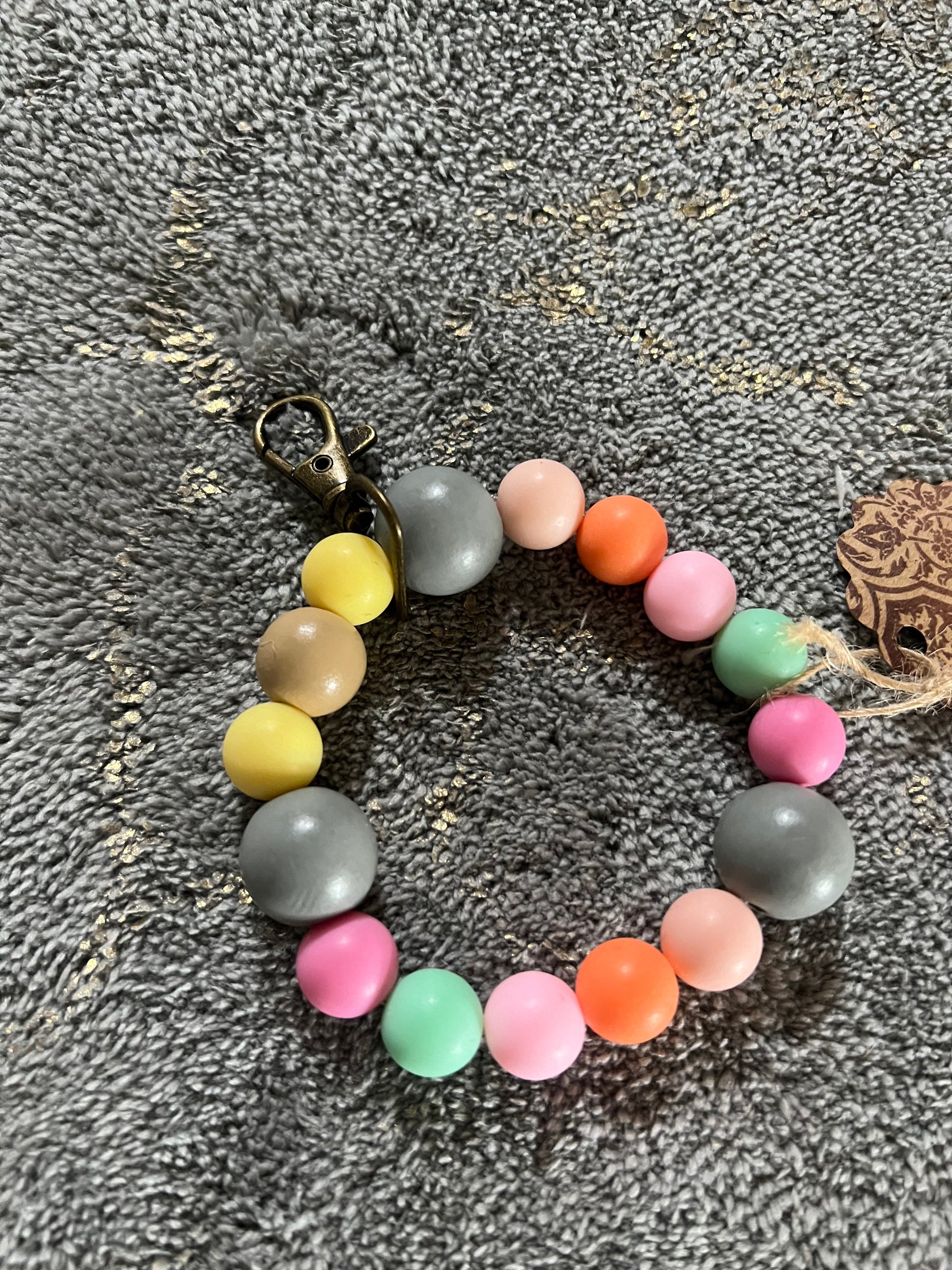 Gray Pink Orange Wristlet